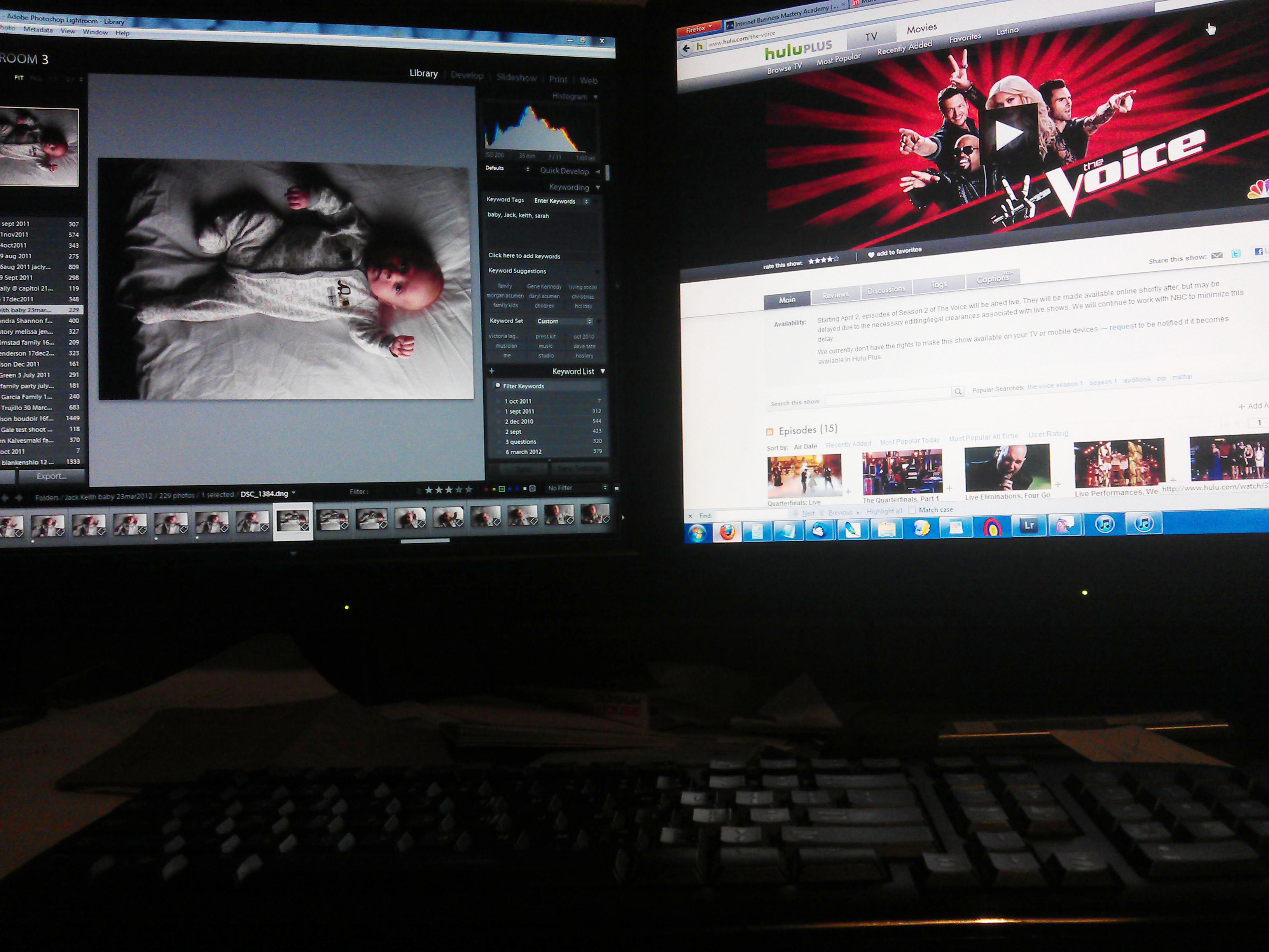 Today has been pretty mundane. I’ve been editing all day long. I skipped going to Metro tonight, I had to pass up on Heather’s invitation to hit The Hotel. Work must be done today. I wrapped up editing on a boudoir shoot for a wonderful lady that came in 2 weeks ago. Honestly, editing was an arduous process. Toward the end, I got really excited about the results. I believe I created some truly exceptional images of this woman. I composed an email to notify her of her finished images. Once again, I felt proud to click the “send” button. Now, I’m editing photos of my dear friend Jack and his newborn baby, John. On my left screen, I have Adobe Lightroom. This program contains all of the work I’ve done for the last several years. Untold amounts of expended energy reside in those pixels. On the right screen, I’m watching episodes of The Voice. Yeah, you can say what you want about cheesy singer reality shows, but I like this one. I love watching people who are so heavily invested in making their dreams come true take their chances at making them a reality. Watching people succeed and fail – it’s a very raw human experience. Both of my screens have a lot of energy going on in them. Perhaps it’s watching these people take a shot at the big time, that has me feeling so pensive tonight…
