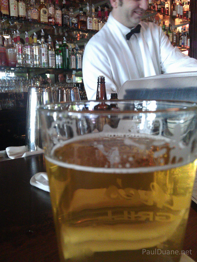 He seemed wise beyond the question of what libation to partake of – seemed like the kind of guy that would also give you some solid life advice while you sipped the suds. A guy sat down to my left and started talking to me about his job as some kid of clandestine government operative that “takes out the bad guys before you even know they are bad”. People like this put me on edge because