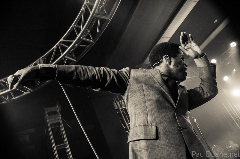 If James Brown and Mick Jagger made a baby, his name would be Ty Taylor, and he would be the front man for Vintage Trouble. Taylor’s energy was palpable via his jumps, spins, lasso-like use of the mic cord, and his urges to jump into the audience (which he gave into a few times). His sweat-soaked suit was the flag, the band played the march, and everyone fell in step. Their live show elicits constant, reflexive smiles and ass-shaking from even the most austere.