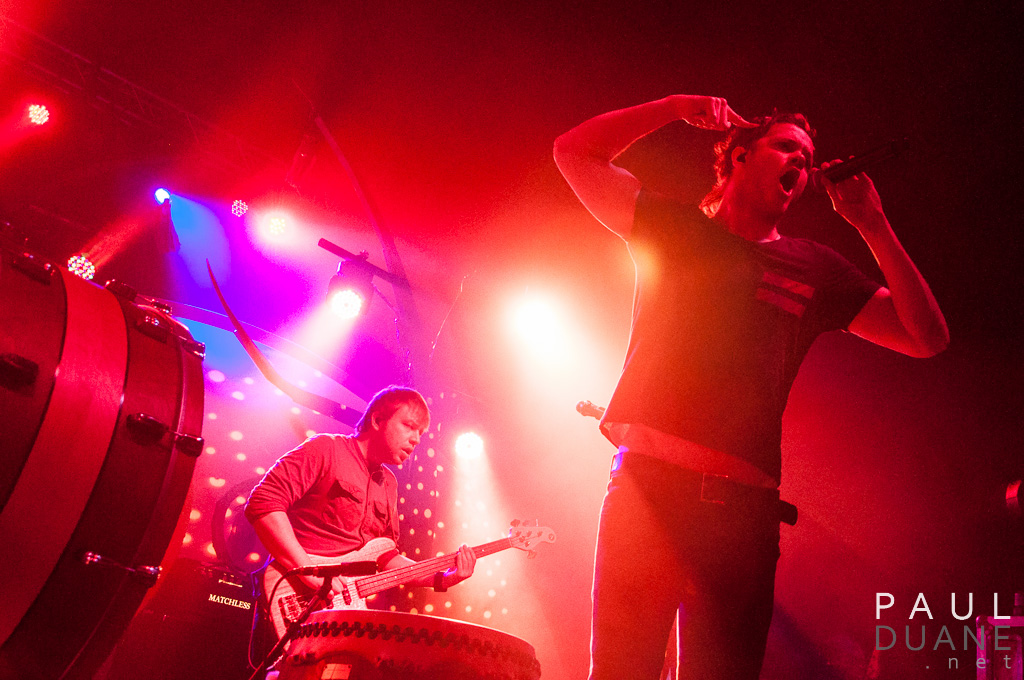 I stood in the photo pit waiting for the band to start. The lights fell, the intro started, and soon the band was on stage. A wall of sound pummeled me in the back of the head that was far louder than the audio from the sound system. When a crowd roars like that, it’s hard to deny that something special is happening on the stage. Dan Reynolds (vocals) both basked in the waves of sound coming from the audience between lines. His performance had a visceral quality that extends beyond his performance on their debut record, Night Visions. Abundant auxiliary percussion, including orchestral bass drum and toms, added to the explosive dynamic of the band’s performance. It’s a shame that produced studio music so often fails to convey the power of such moments.
