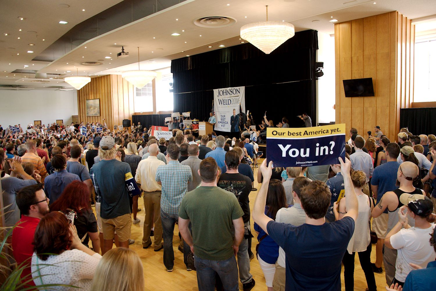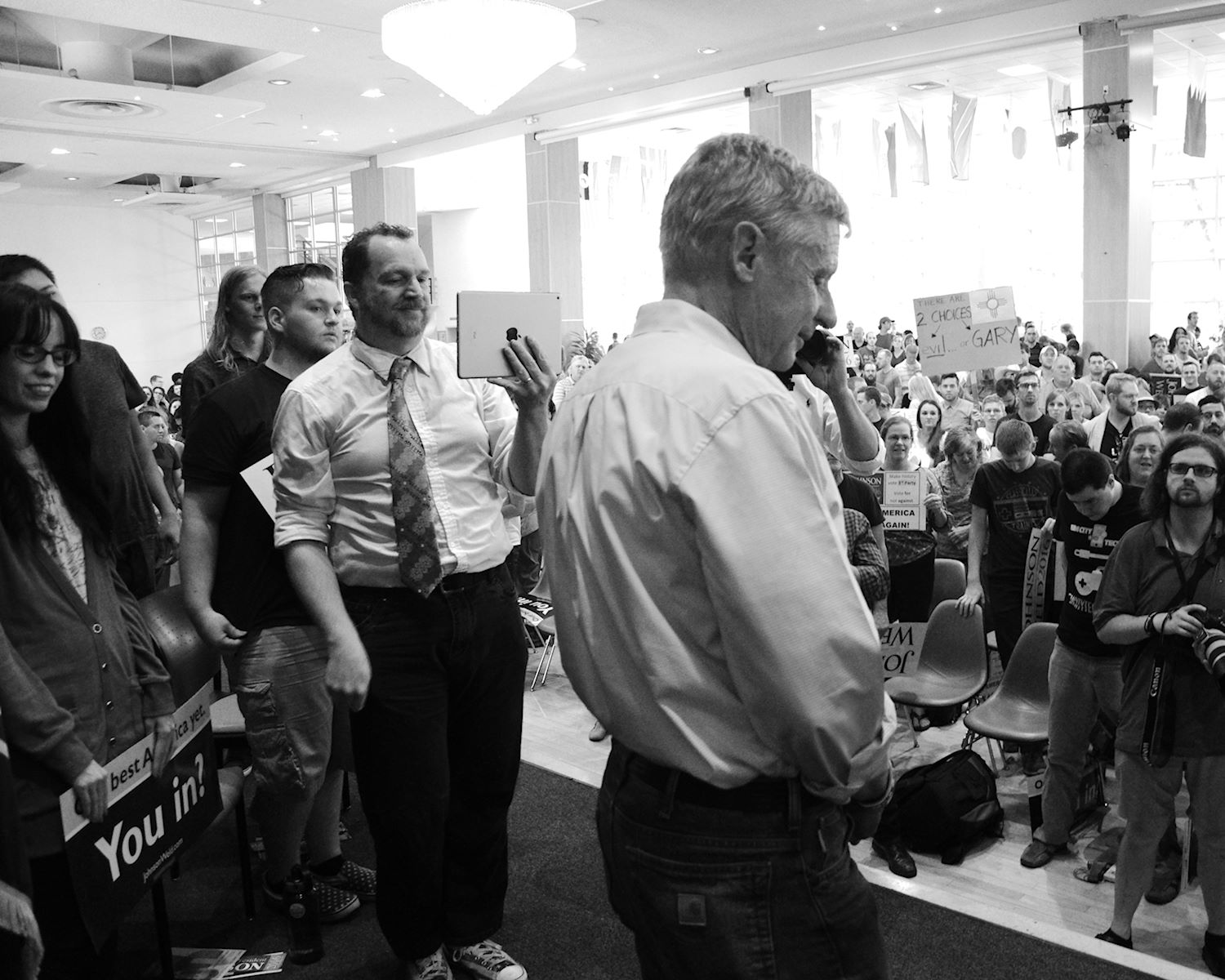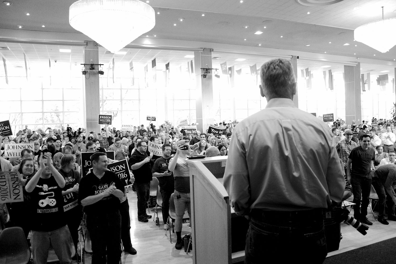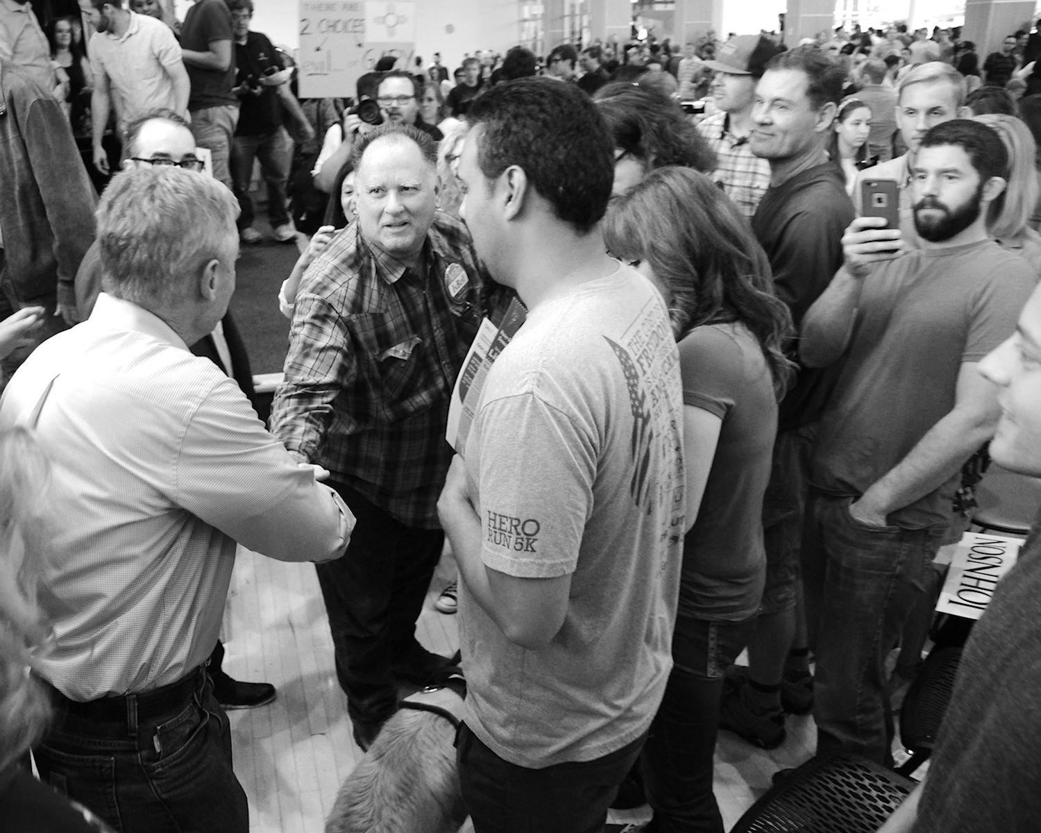 Governors Johnson and Weld came to Salt Lake City on 6 Aug for a rally at the University of Utah. We had an awesome turnout, a roaring crowd of 1500 people along with coverage from every news outlet in town. I had the privilege of photographing the event and participating in the press conference beforehand. The podcast episode attached to this post contains the audio from the press conference. Senator Mark Madsen (newly minted Libertarian, having recently left the Republican Party), joined Johnson & Weld for the media Q&A.