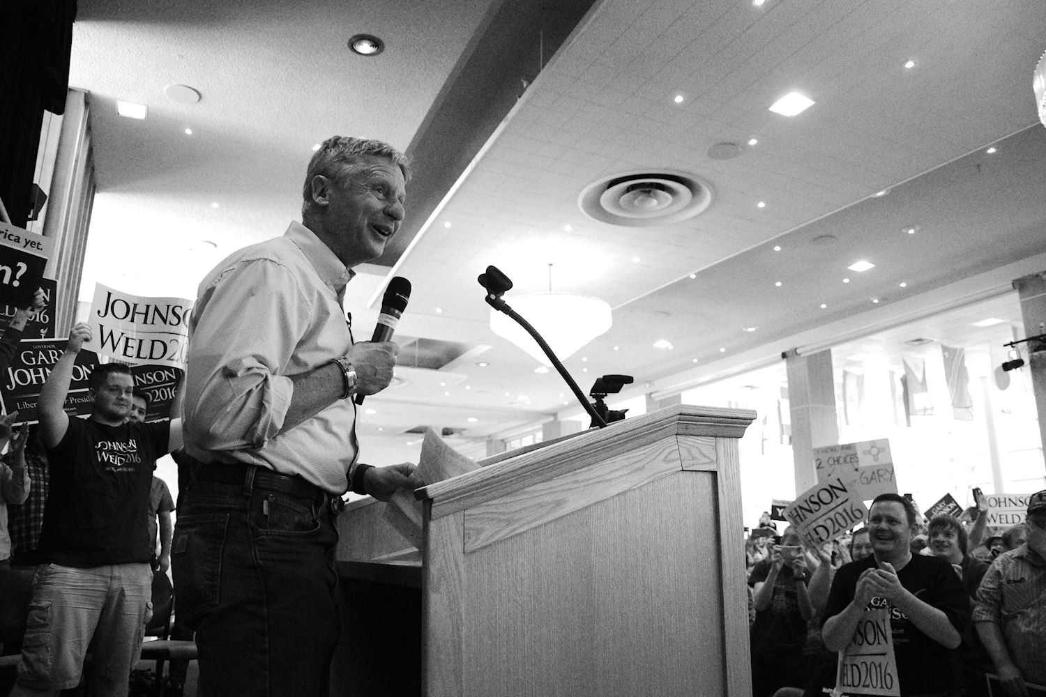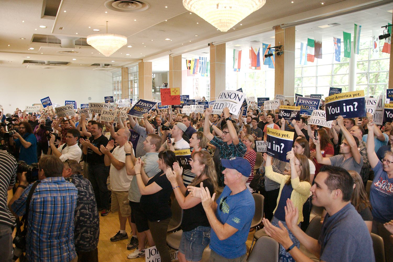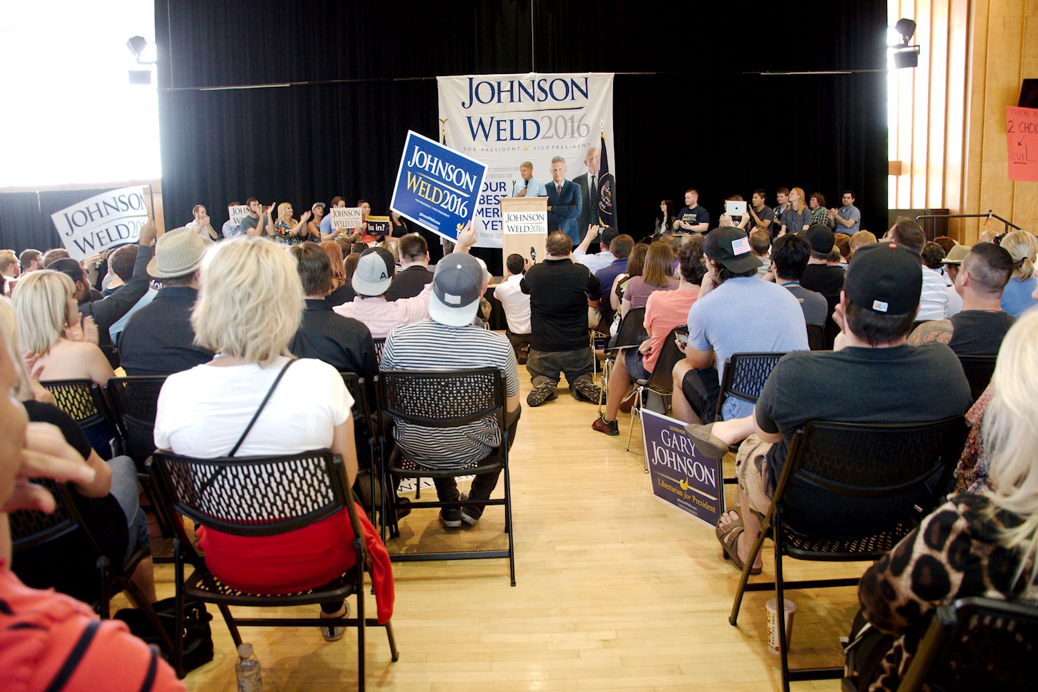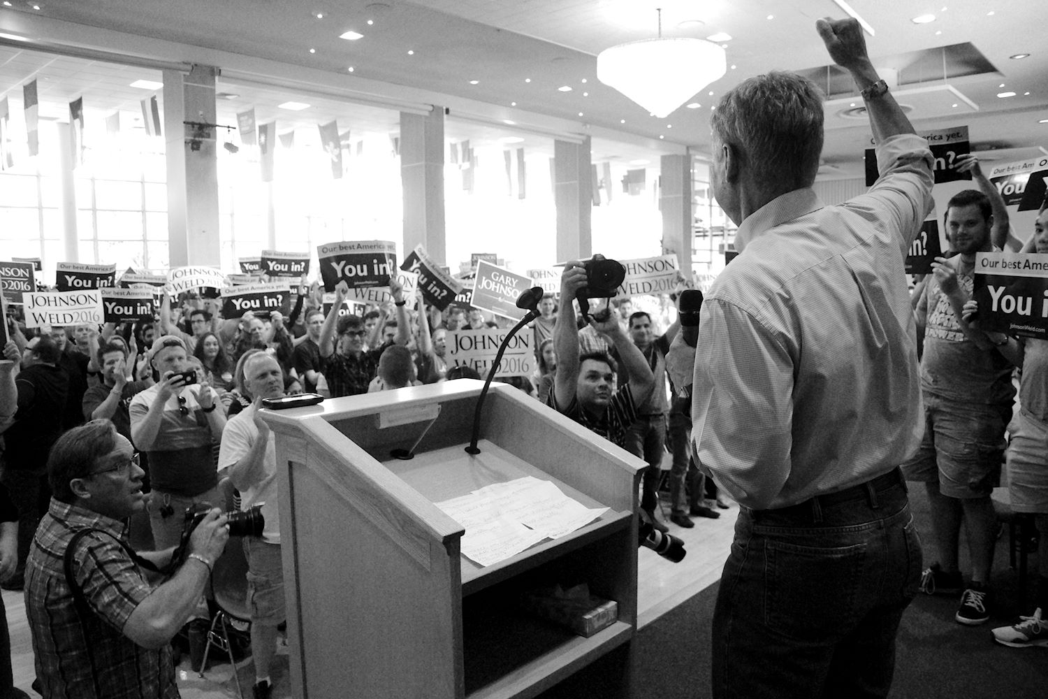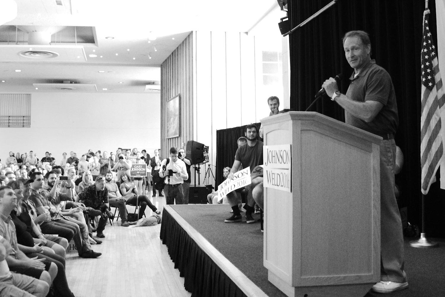 Governors Johnson and Weld came to Salt Lake City on 6 Aug for a rally at the University of Utah. We had an awesome turnout, a roaring crowd of 1500 people along with coverage from every news outlet in town. I had the privilege of photographing the event and participating in the press conference beforehand. The podcast episode attached to this post contains the audio from the press conference. Senator Mark Madsen (newly minted Libertarian, having recently left the Republican Party), joined Johnson & Weld for the media Q&A.