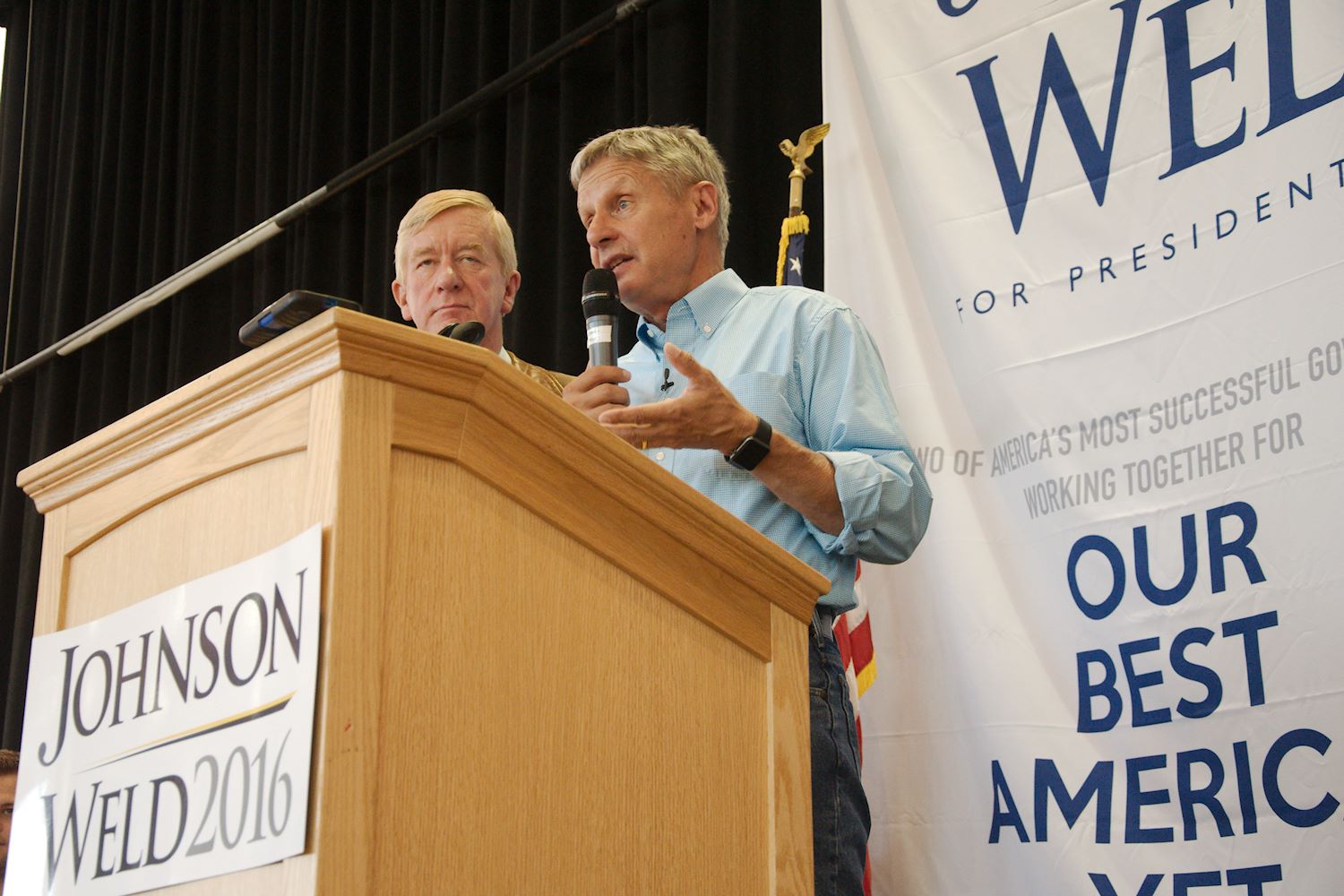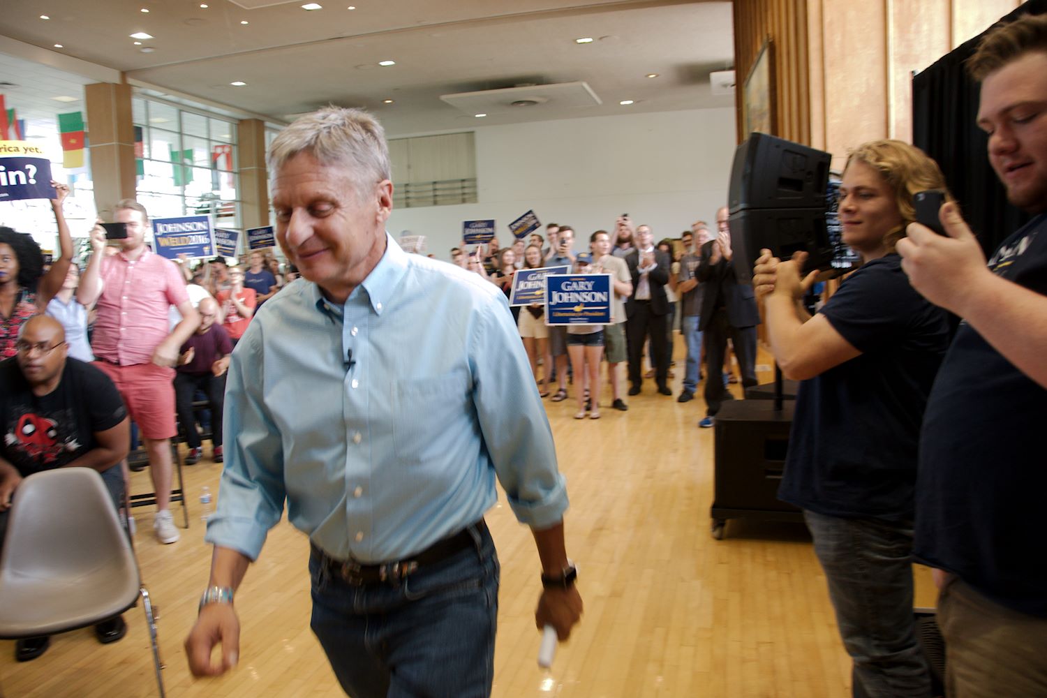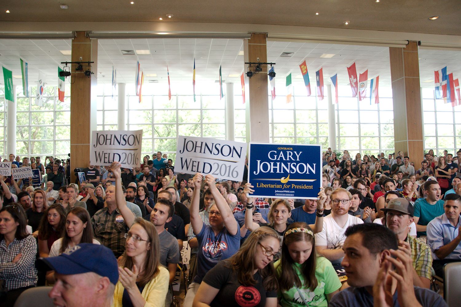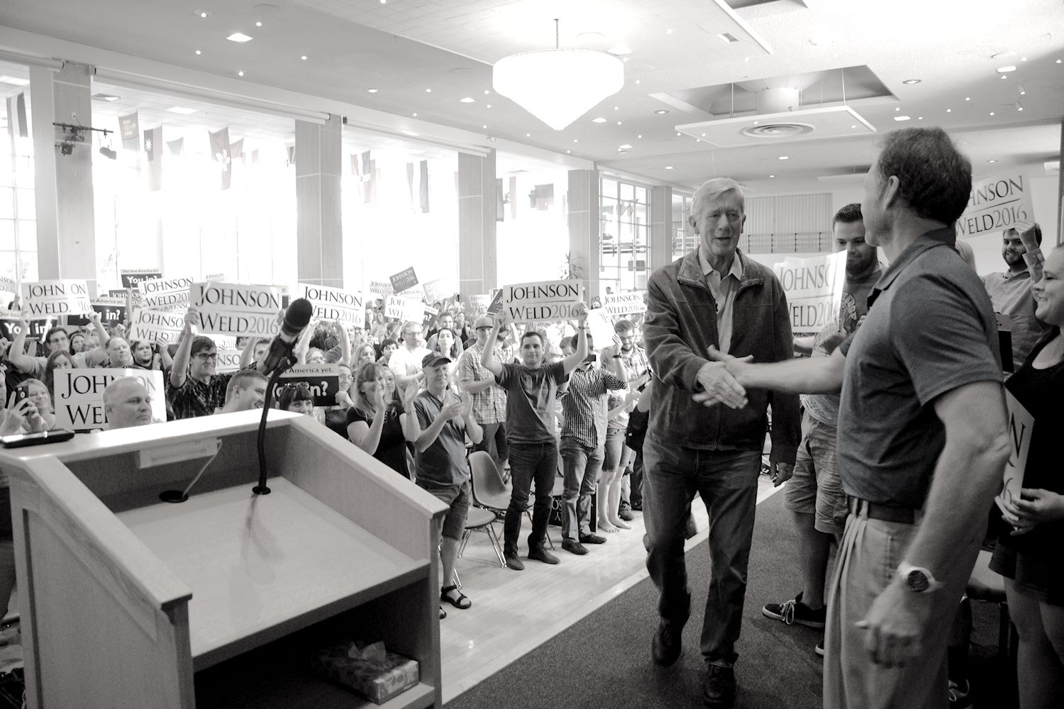 Governors Johnson and Weld came to Salt Lake City on 6 Aug for a rally at the University of Utah. We had an awesome turnout, a roaring crowd of 1500 people along with coverage from every news outlet in town. I had the privilege of photographing the event and participating in the press conference beforehand. The podcast episode attached to this post contains the audio from the press conference. Senator Mark Madsen (newly minted Libertarian, having recently left the Republican Party), joined Johnson & Weld for the media Q&A.