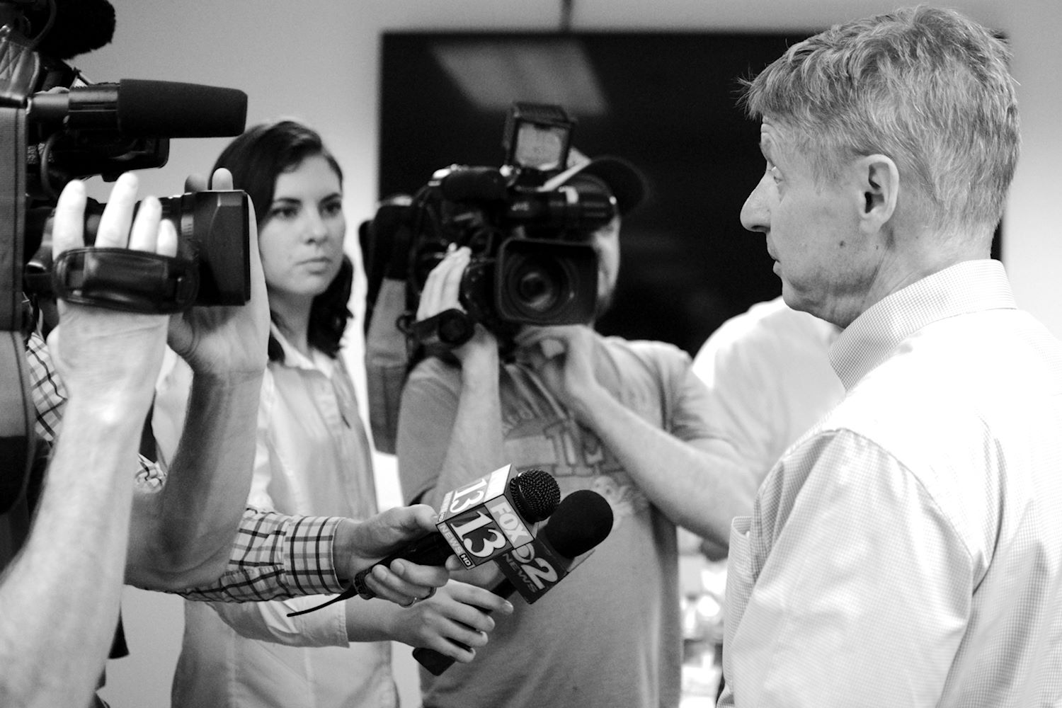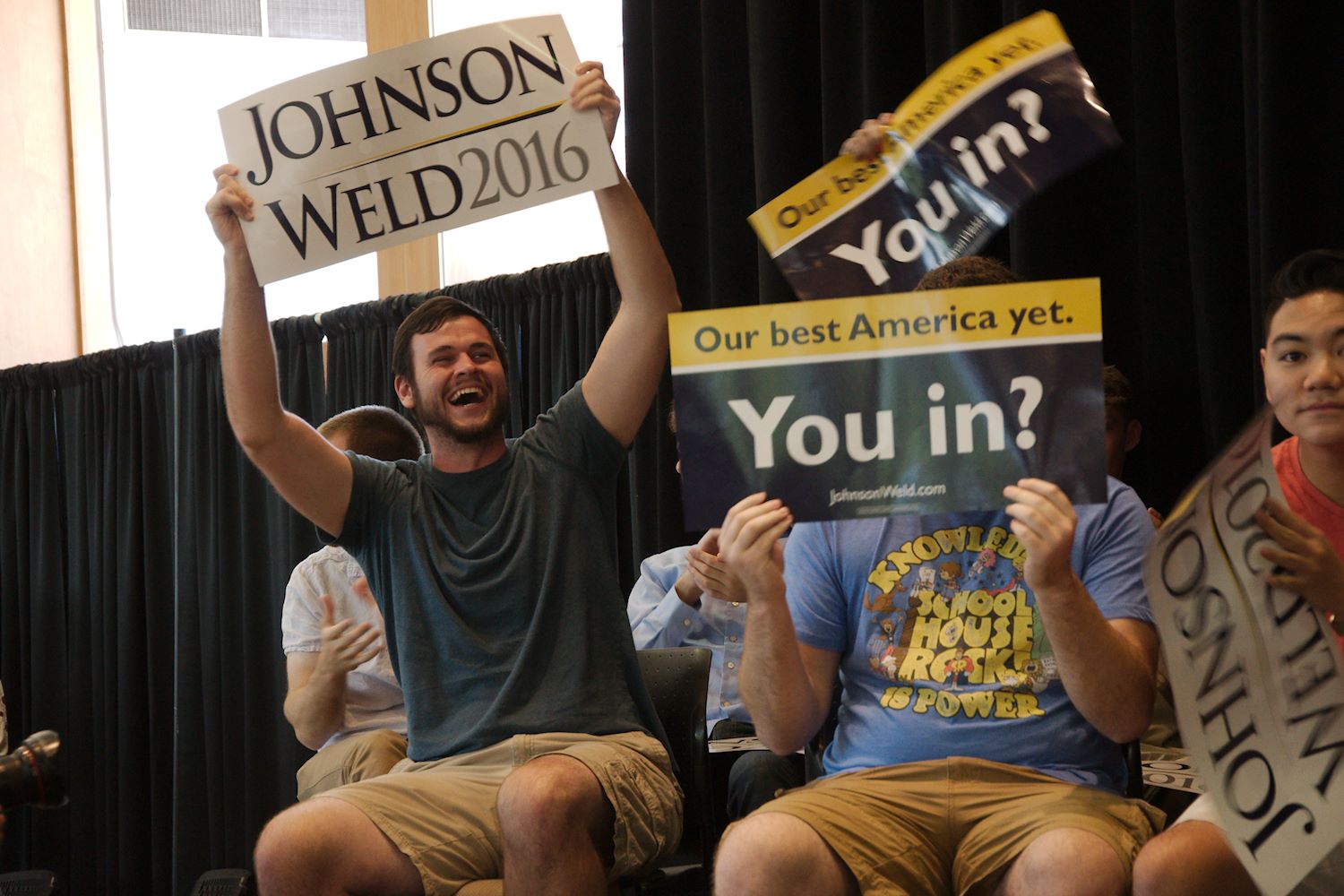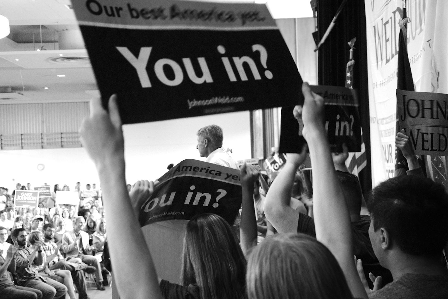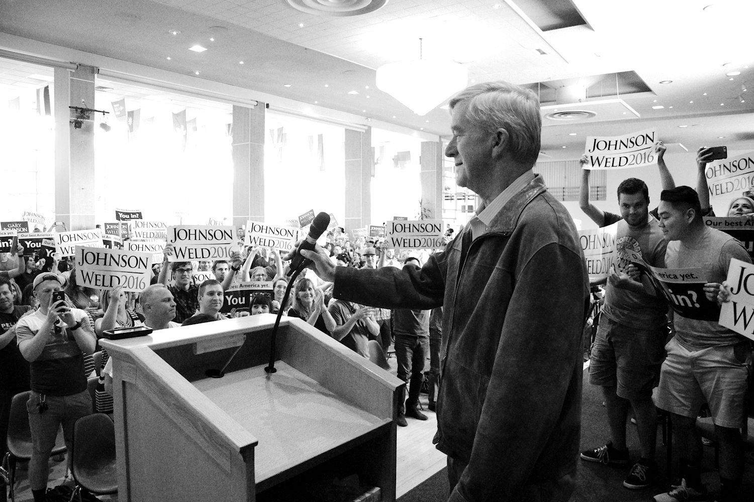 Governors Johnson and Weld came to Salt Lake City on 6 Aug for a rally at the University of Utah. We had an awesome turnout, a roaring crowd of 1500 people along with coverage from every news outlet in town. I had the privilege of photographing the event and participating in the press conference beforehand. The podcast episode attached to this post contains the audio from the press conference. Senator Mark Madsen (newly minted Libertarian, having recently left the Republican Party), joined Johnson & Weld for the media Q&A.